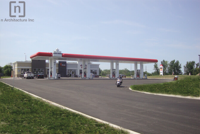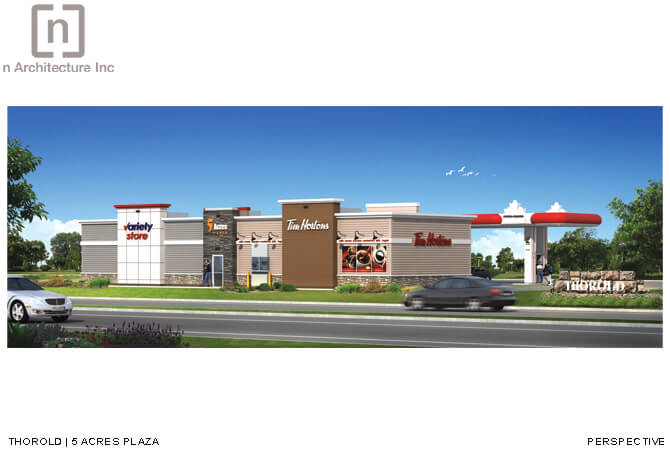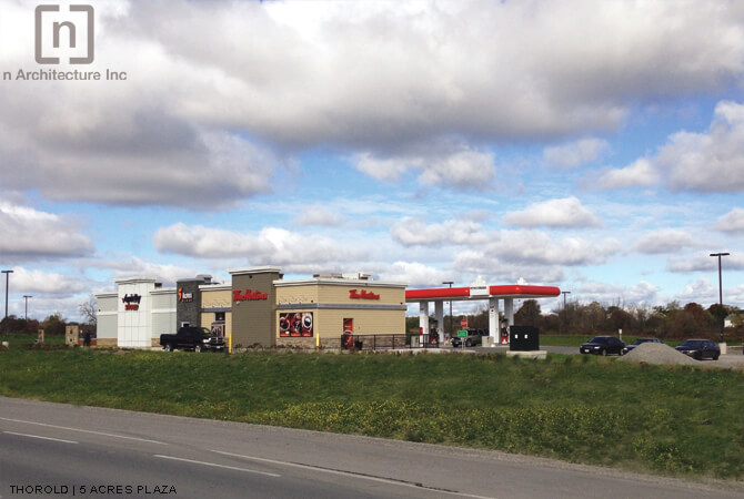 Situated right at the boundary of Niagara Falls and Thorold, this gate way site went through a rezoning process whereby the current agricultural zoning was changed to Highway commercial. This change in zoning allowed for a Petro Canada Gas Station and a Tim Horton’s to be developed on this site. Complexity of this project stemmed not only from its location or from the fact that there was no servicing present but also from the rules, regulations and the jurisdiction of the various agencies involved namely the Ministry of transportation, the Niagara Region and the City of Thorold .