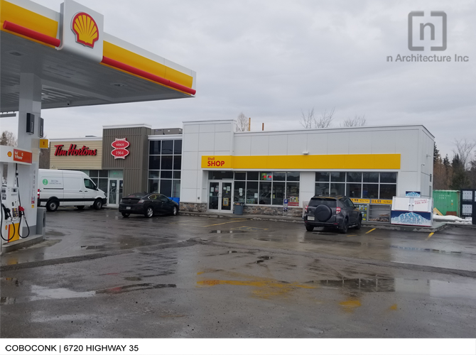 The volume’s cladding merges this sense through the integration of stone with Hardie Boards & Panels and at the same time the diversity in the colour palette used in the façade was to show both Shell and Tim Horton’s graphical identity. n Architecture Inc. worked on the design of this project to reach a harmonious design satisfying both companies’ desired theme.